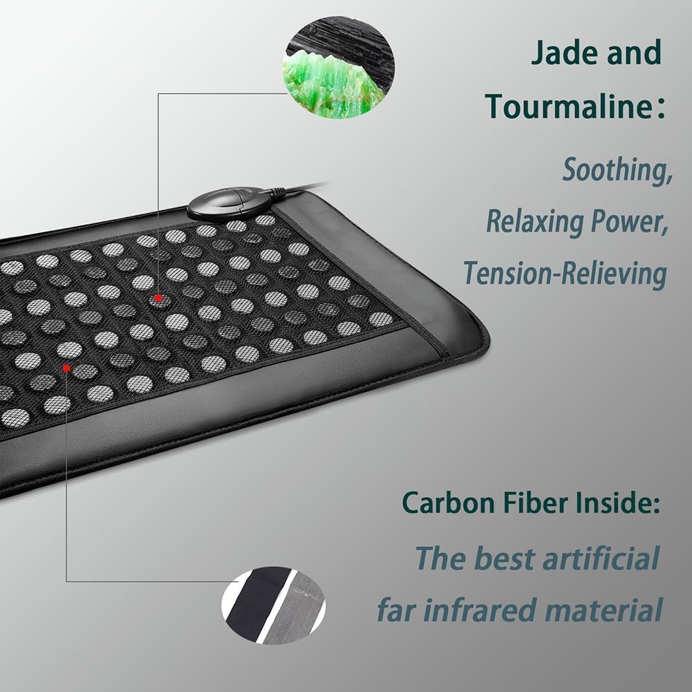 - INFRARED TECHNOLOGY: Features natural jade stones that make far infrared heat for deep penetrating warmth and muscle comfort.26 x 16.5 inches